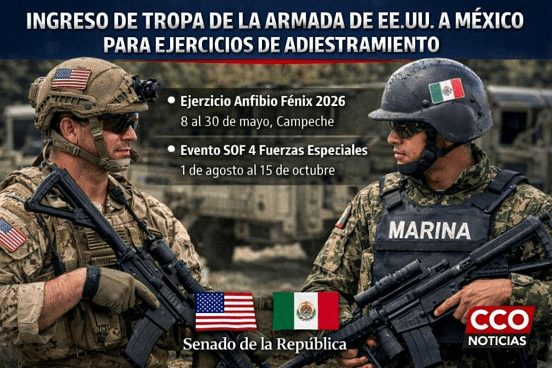 A través de un mensaje difundido en redes sociales, la legisladora explicó que la petición contempla la participación de personal estadounidense en el Ejercicio Multinacional Anfibio Fénix 2026, programado del 8 al 30 de mayo de este año en el estado de Campeche.