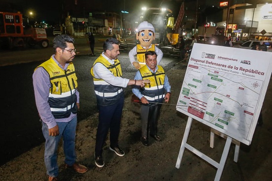 En representación del titular del Ejecutivo, el coordinador general de gabinete, José Luis García Parra, supervisó los trabajos junto con el secretario de Infraestructura, José Manuel Contreras de los Santos, donde destacó que este programa estatal contempla la intervención de 33 vialidades principales y más de 5 mil calles en todo el territorio poblano. Subrayó que, en esta etapa, la obra en la Diagonal Defensores abarca más de 13 kilómetros, desde la prolongación de la avenida Reforma hasta la carretera federal Puebla-Tehuacán, en beneficio directo de 50 colonias y más de 278 mil habitantes.