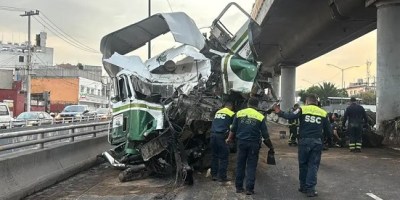Tráiler se estrella contra viaducto de Línea B del Metro